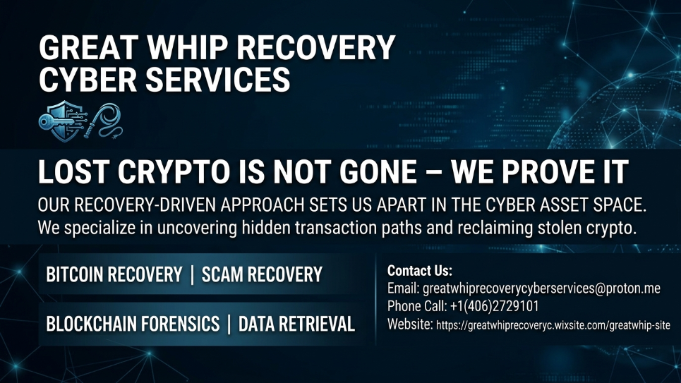 Hello everyone. I’d like to share my personal experience from one of the most challenging times in my life. I’m based in Sydney, Australia, and on November 13, 2025, I fell victim to a fraudulent cryptocurrency investment platform that promised substantial financial growth. Believing their claims, I invested a total of $220,000 with the expectation of earning solid returns. However, when I attempted to withdraw my funds, all communication abruptly stopped. My calls were ignored, my emails went unanswered, and I was left feeling completely powerless. Like many others, I had heard that Bitcoin transactions are impossible to trace, so I assumed my money was lost forever. After some time, I discovered information about GREAT WHIP RECOVERY CYBER SERVICES, a reputable digital asset recovery firm. I decided to reach out to them, and to my astonishment, they were able to help me recover the full amount I had lost. I’m sharing my story in the hope that it may help someone else who is going through a similar situation and looking for support. Their contact is,Website: https://greatwhiprecoveryc.wixsite.com/greatwhip-site