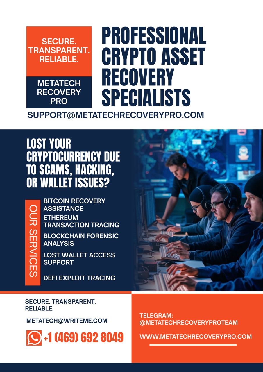 I found META TECH RECOVERY PRO to be professional, responsive, and effective in addressing a complex, time-sensitive fraud. Their intervention was decisive in recovering my assets and in restoring my confidence in the integrity of legitimate crypto recovery processes. CONTACT THEM VIA