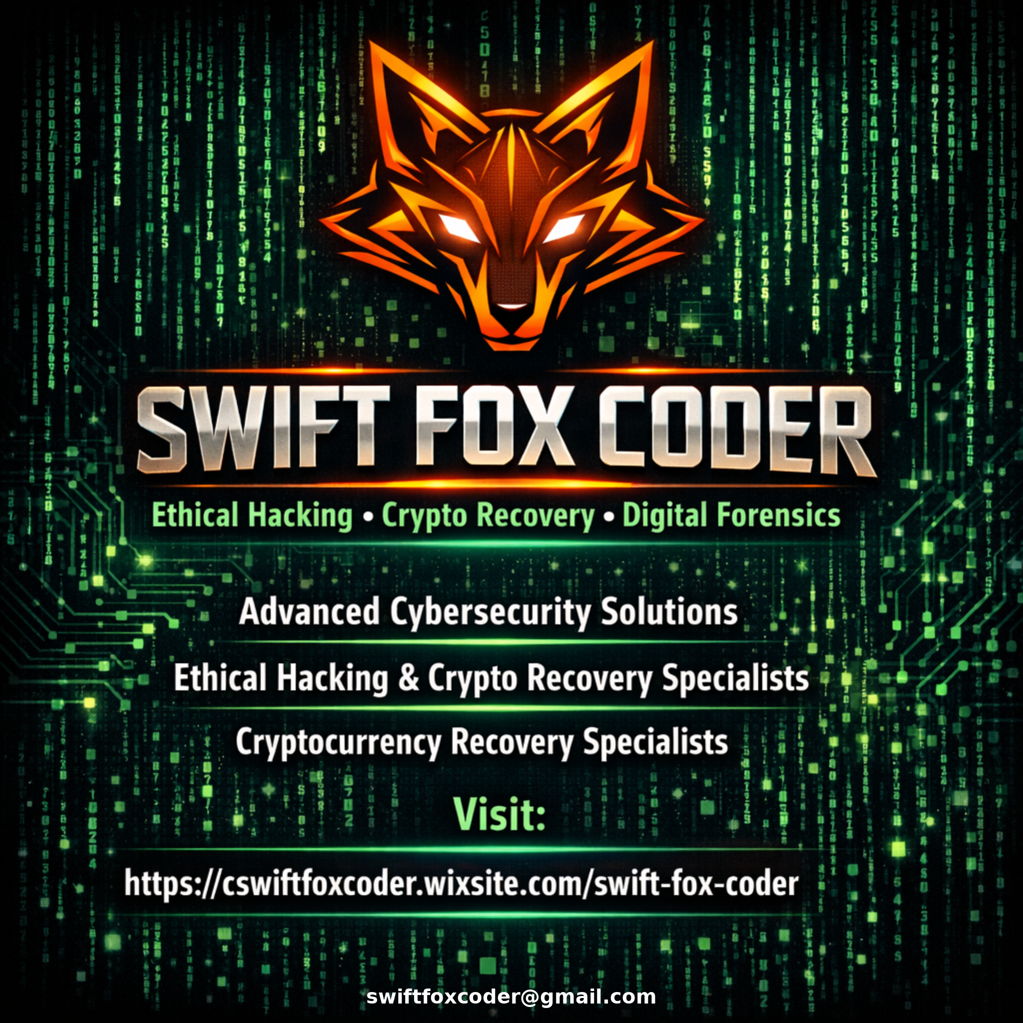 On top of all that, Swift Fox Coder also helped my sister recover all of her stolen cryptocurrency after she fell victim to a fake investment platform scam. She was devastated and thought everything was gone for good. Swift Fox Coder stepped in with the same professionalism and skill tracing transactions, identifying fraudulent activity, and using ethical recovery methods to help her retrieve what she lost. Seeing her get her assets back was nothing short of incredible.